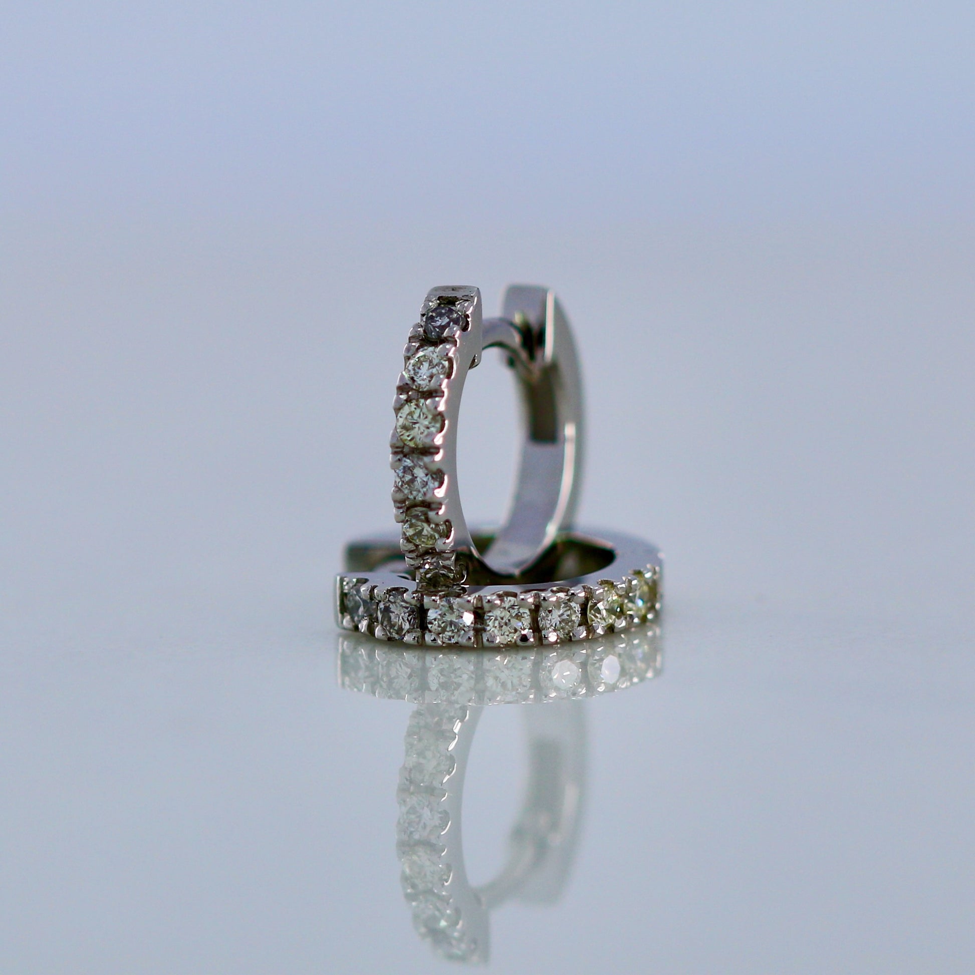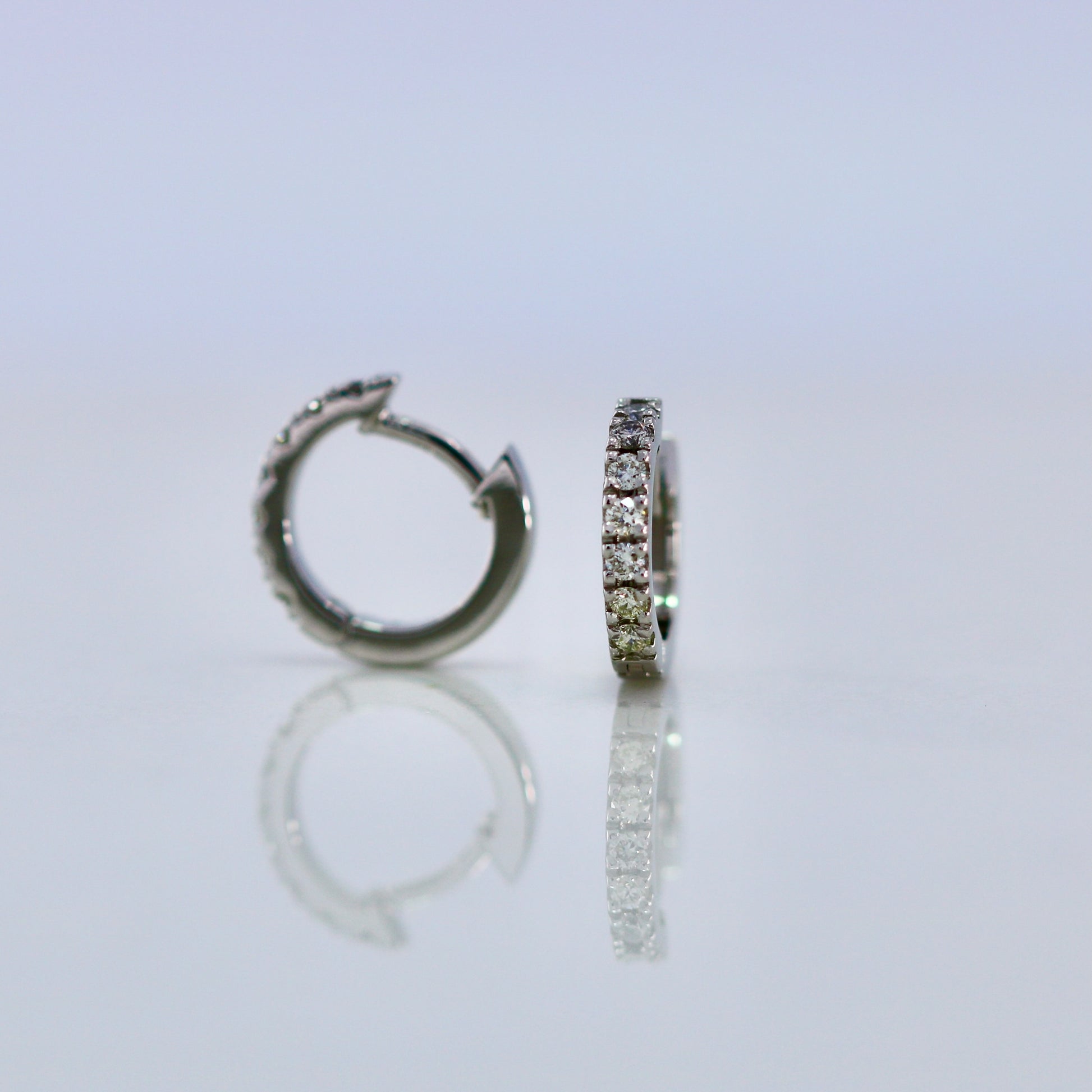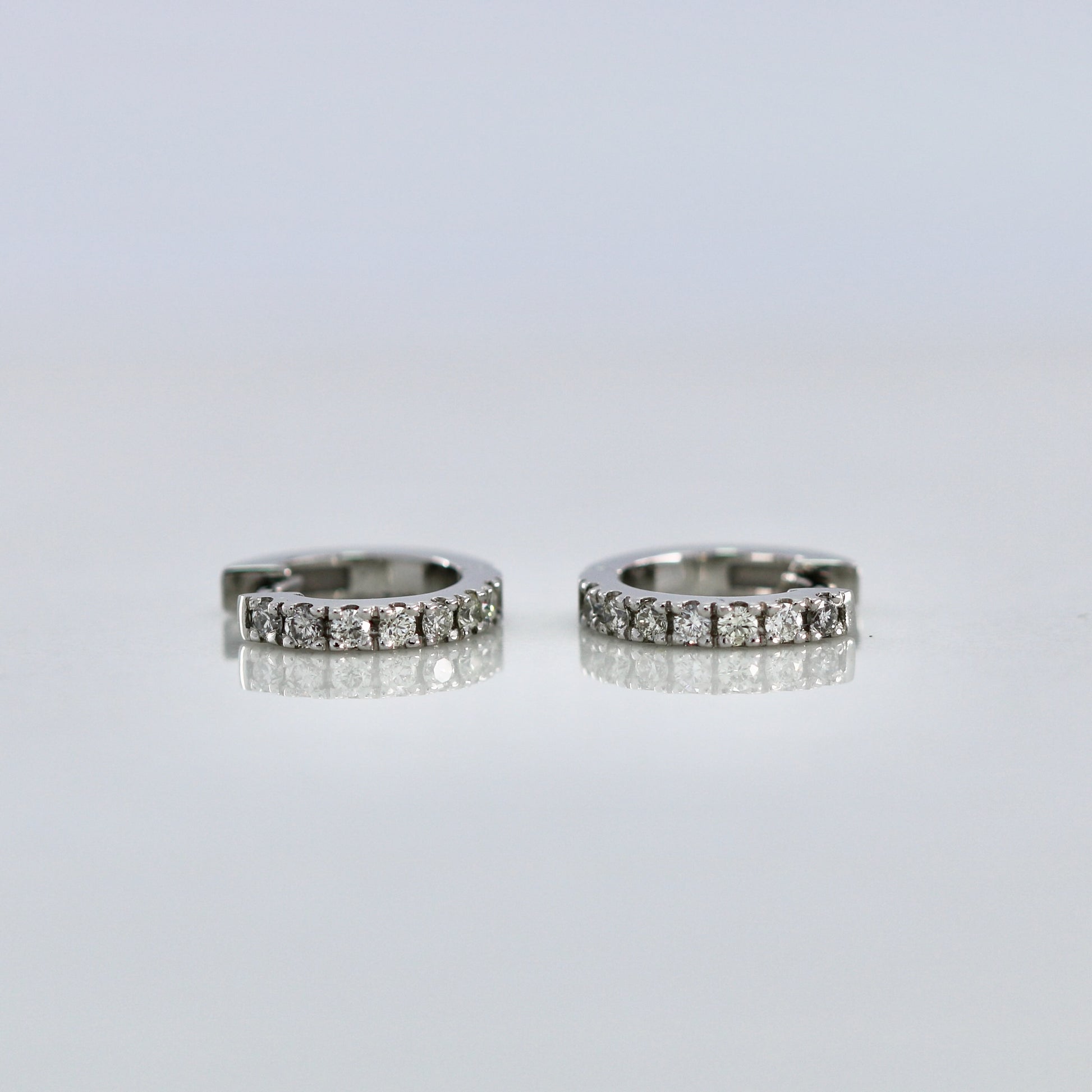 Available in gold and Platinum , Huggies set with 14 diamonds 1.5mm in diameter +- 0.21ct , Earring weight +- 1.8 g ,